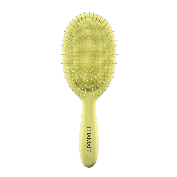 La brosse démêlante ovale de Framar, édition « Amargosa » est de couleur chartreuse.