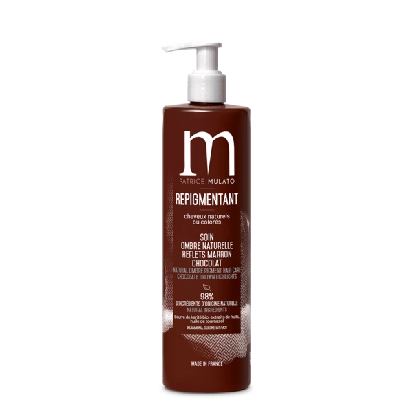 « Soin crème repigmentant reflet chocolat marron.