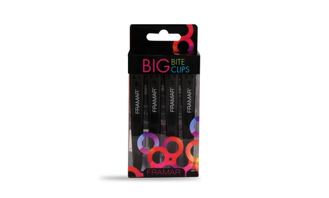 Lot de 4 pince Big Bite Clips de Framar noires. Elles sont anti-dérapantes et idéales pour tenir les grandes mèches.