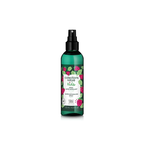 Le Spray Super Démêlant Collections Nature Kids discipline et démêle les noeuds sans effort tout en laissant un délicieux parfum de fraise dans les cheveux.